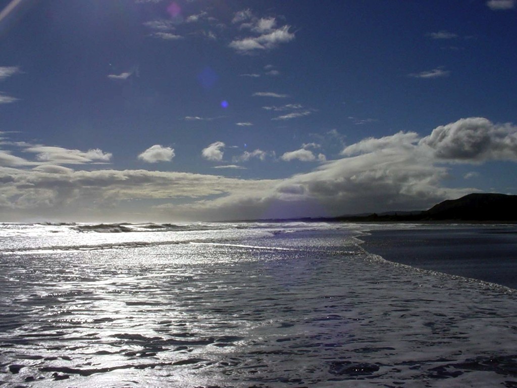 - The surface shimmers with the reflection of the sky, trees, clouds.